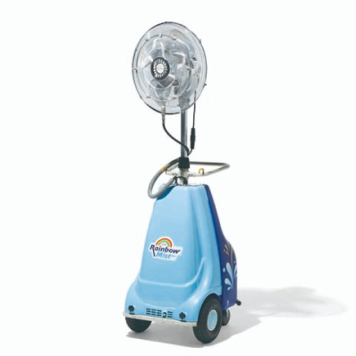 見た目にも涼しく、体感温度を下げる効果が期待できる「ミスト機(レインボーミスト)」。