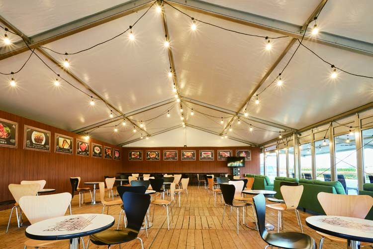 【無柱空間での自由な使用】 ヨーロッパ発の洗練されたデザインで、広い面積を一張で設置できます。柱がないため、展示やイベントの用途に合わせて自由に空間を活用できます。