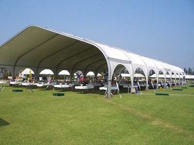 【広いスペースと無柱空間】 広い面積を一張で設置可能で、4.5mピッチで拡張が可能なテントです。