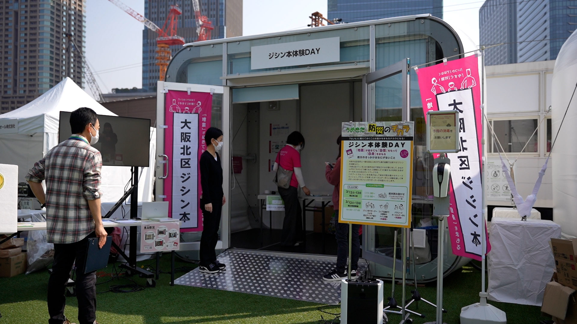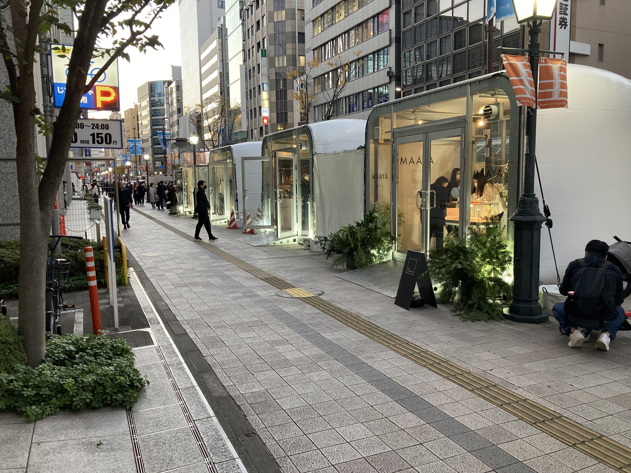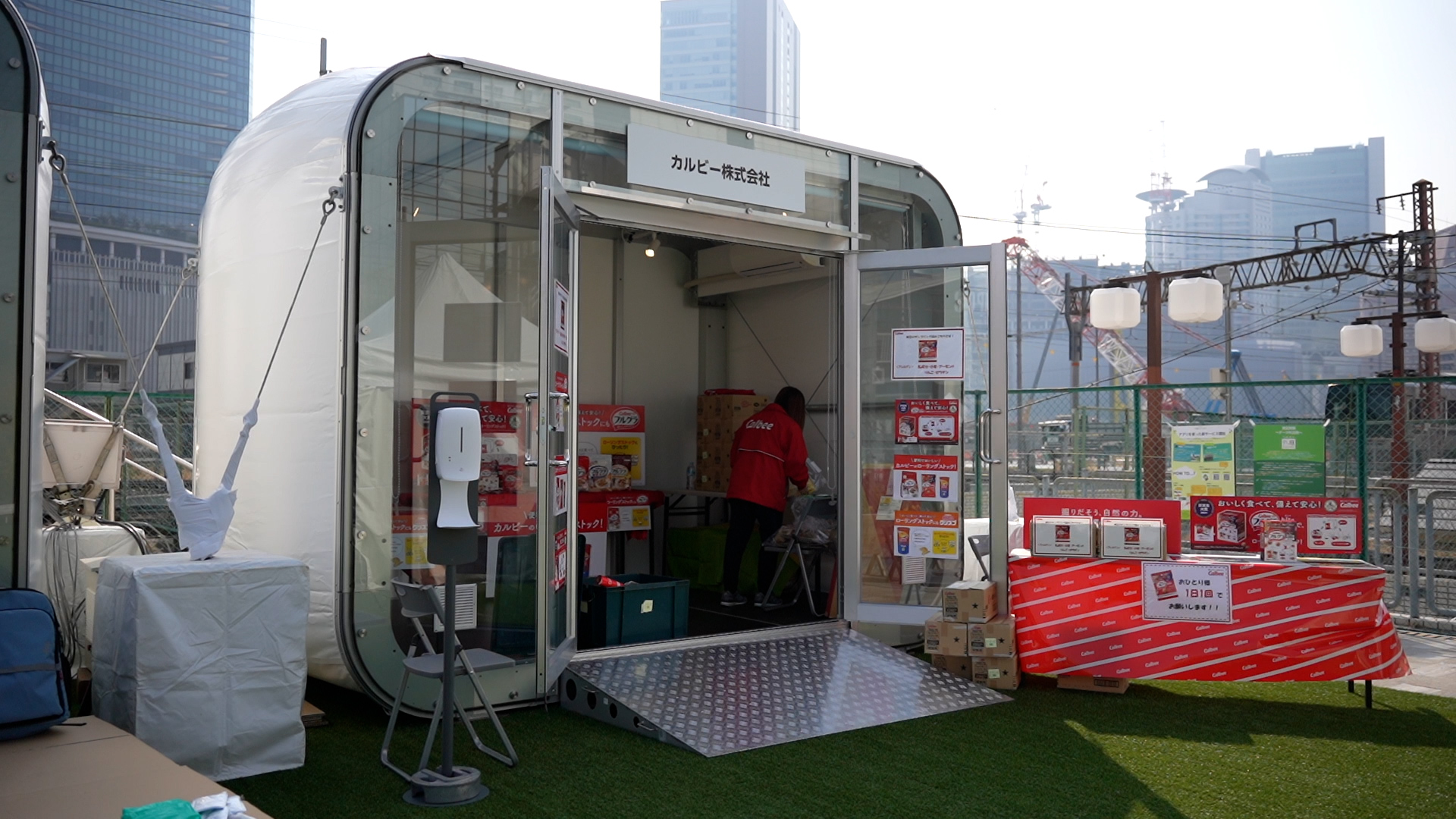 【斬新なデザイン】 「ポップアップショップ」のイメージ。従来のテントを覆す斬新なデザイン。フローリング付きで、雨水の侵入を防止。奥行側に連棟すれば、2.5mピッチで拡張が可能です。