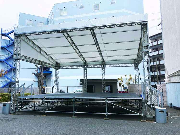 【屋外イベントに最適】 屋外のライブやイベントに最適なステージテント。広々としたスペースを確保できます。