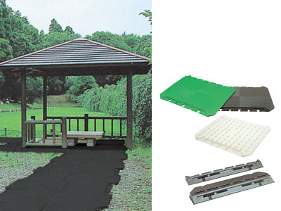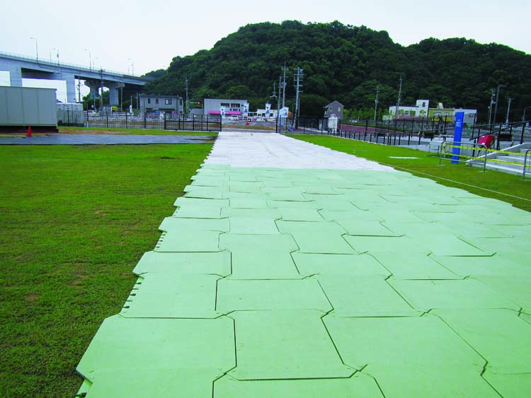 【荒れ地やぬかるみを保護】 未舗装の地面や荒れ地に敷いて、踏んだ時に汚水が吹き出すのを防止します。工事現場やイベント会場の地盤をきれいに保ちます。