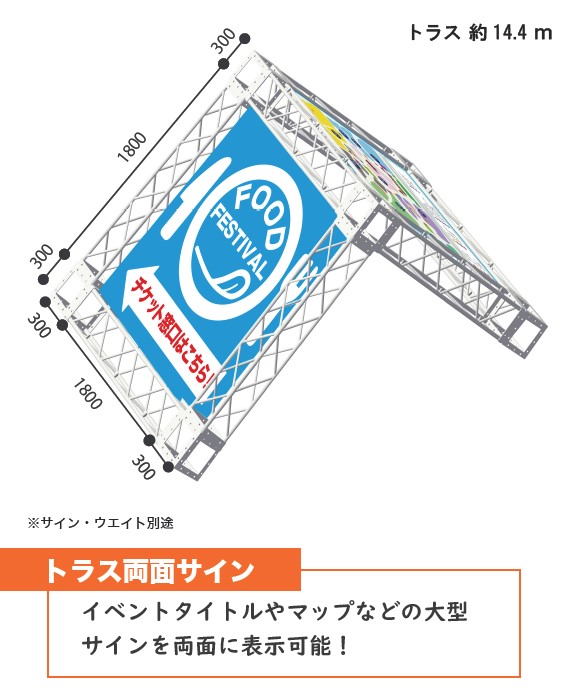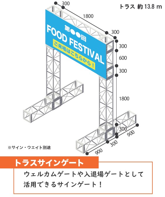 サイズ目安200角トラス、300角トラス、450角トラス